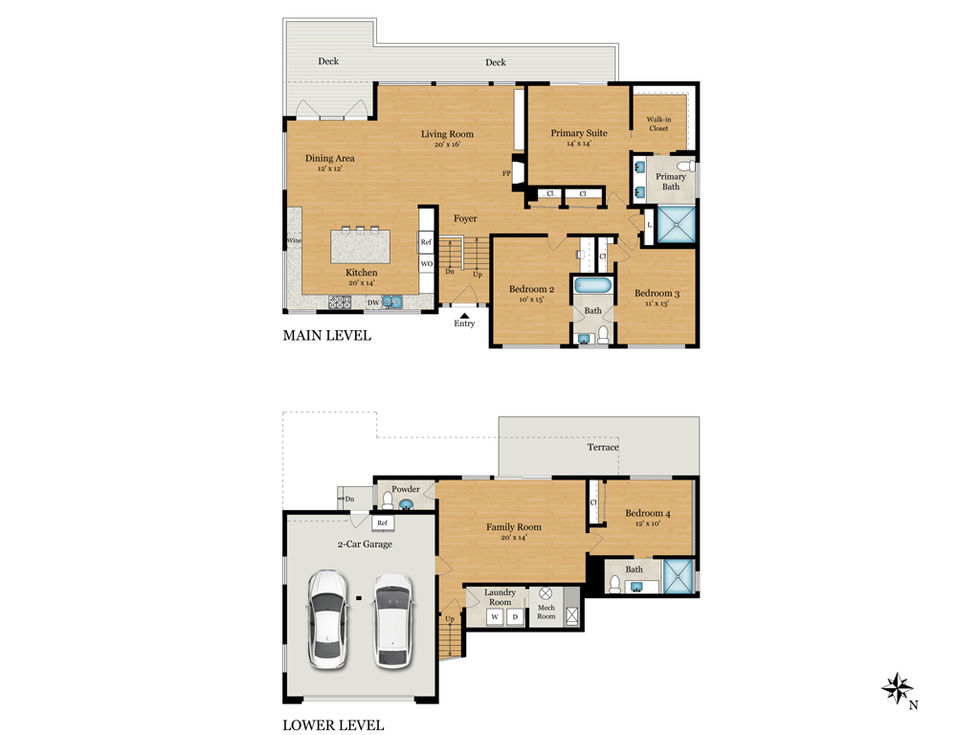 Three bedrooms are located on main level including the retreat-like primary bedroom suite with a view deck that feels like a boutique hotel. It features a very spacious walk-in closet, large bath with an oversized stall shower, double floating vanity, and porcelain tile flooring. The two additional bedrooms share a beautiful Jack and Jill bath.